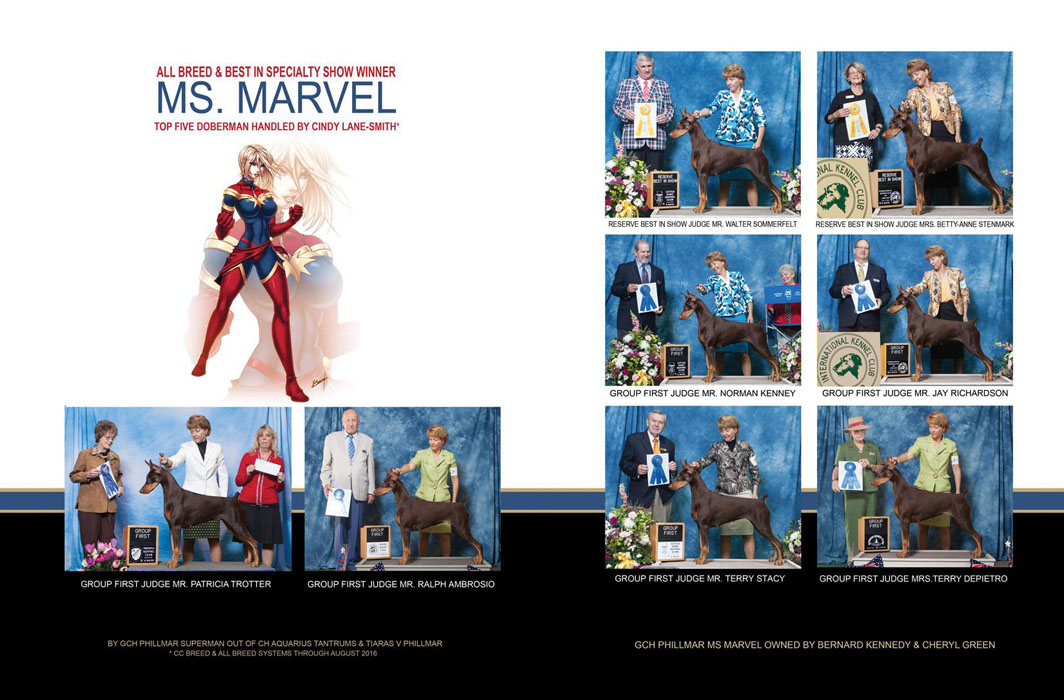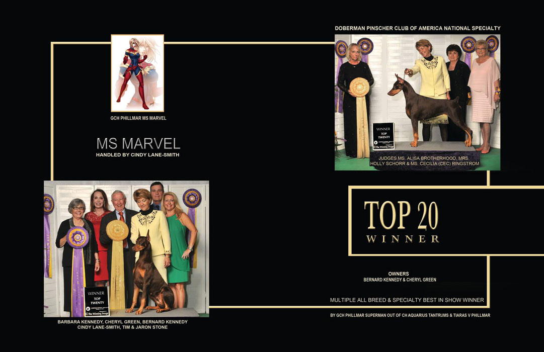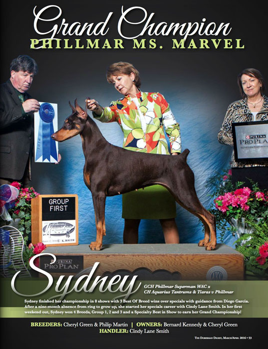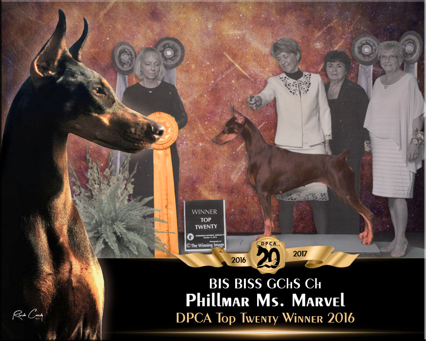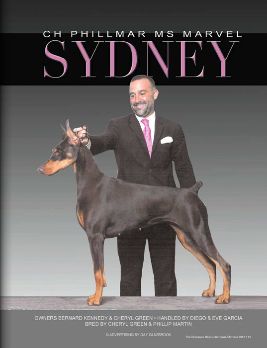 Sydney finished her campaign after 8 months with 8 Best in Shows, 8 Best in Specialty Shows and was not only a DPCA TOP TWENTY Finalist at the 2016 and 2017 National Specialty